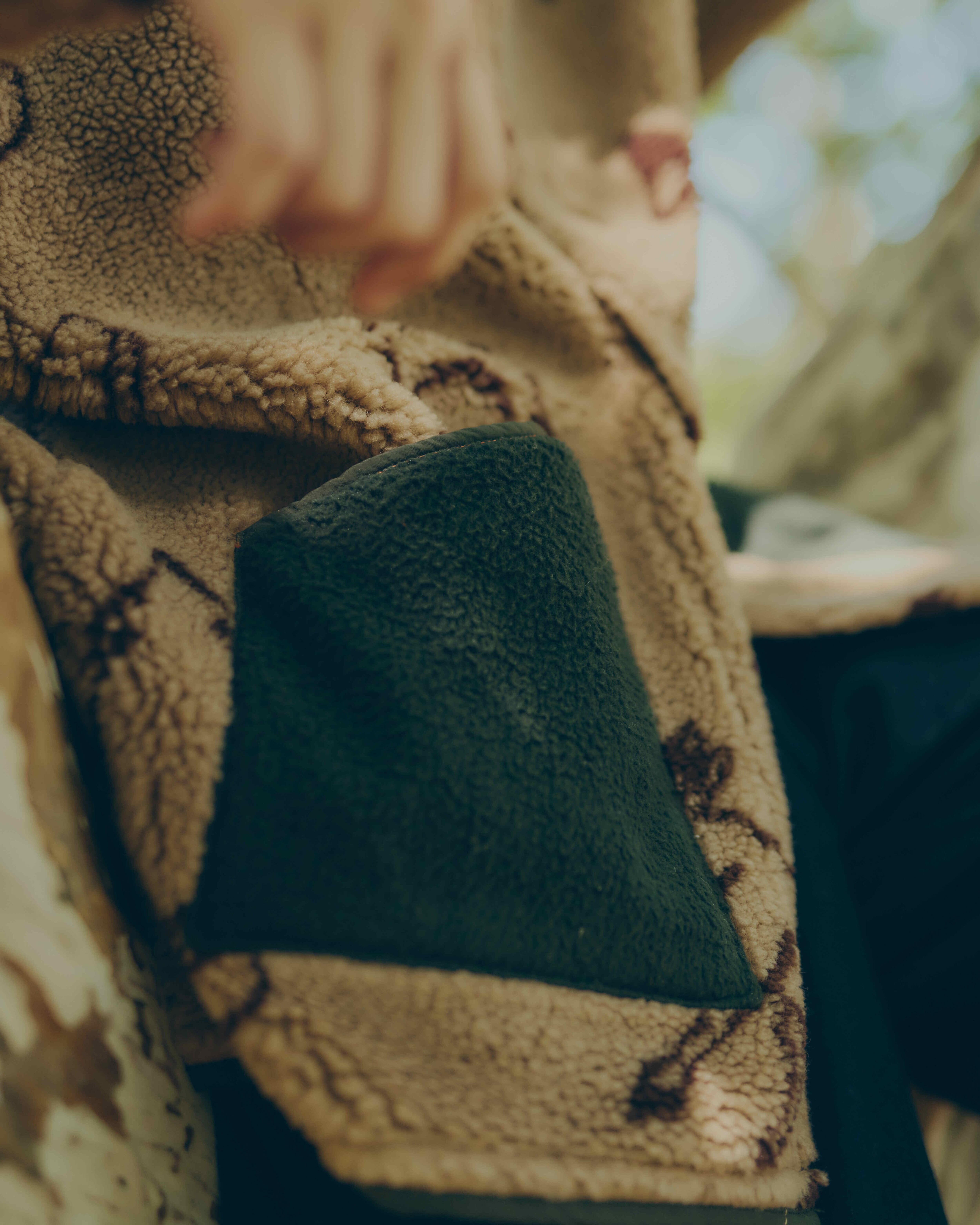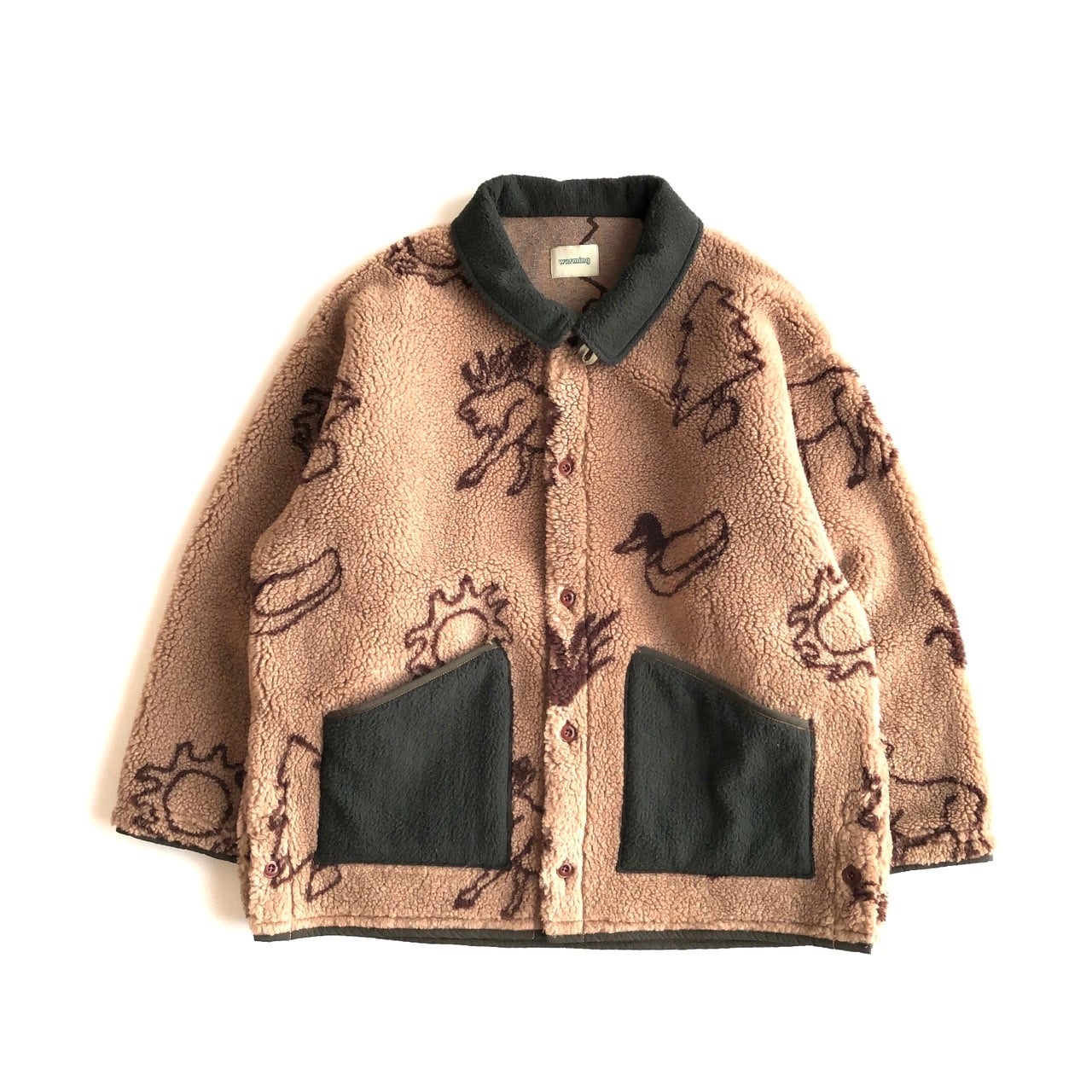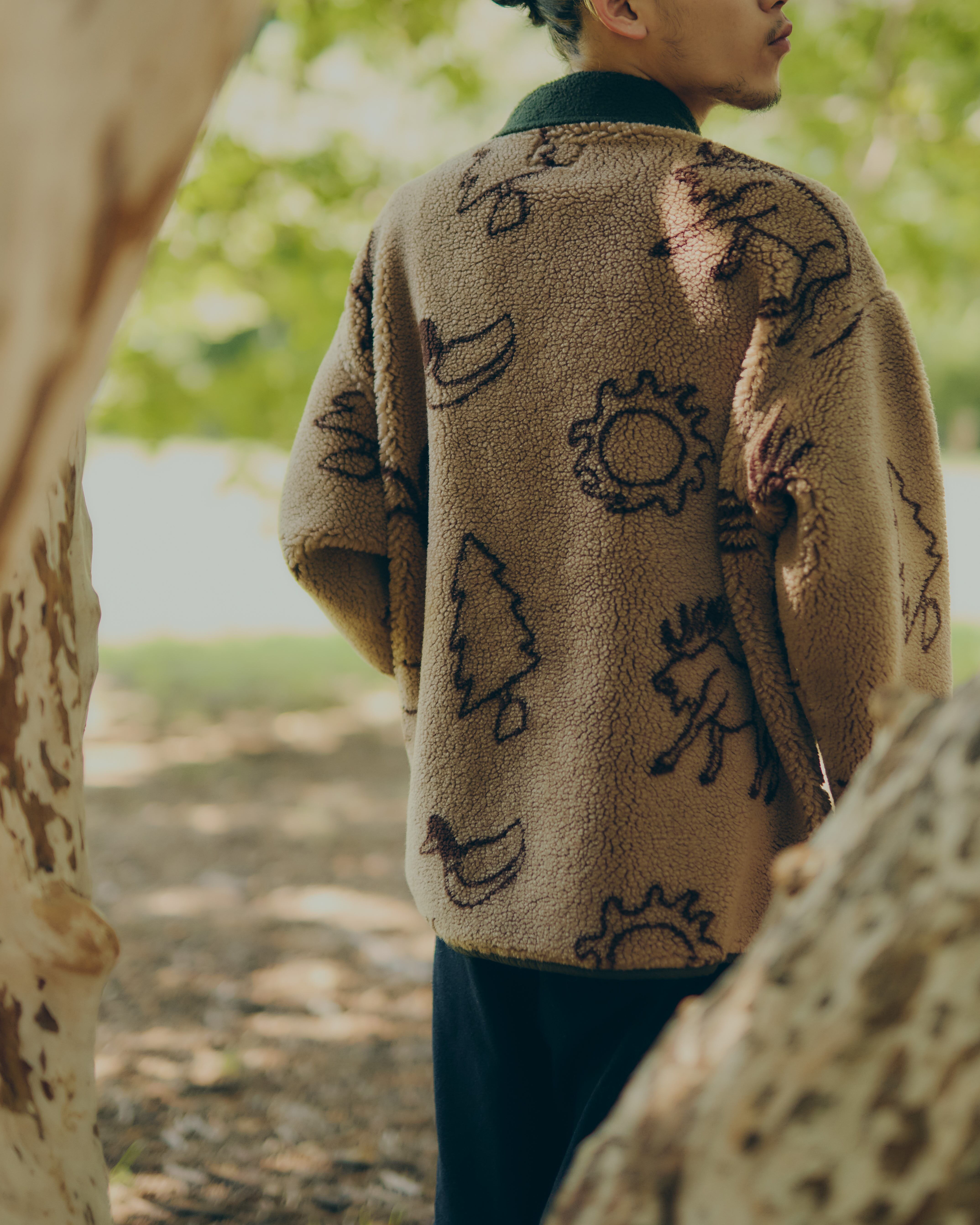 kaoru sato × warming / patterned deep pile fleece jacket (2tone color ver.)